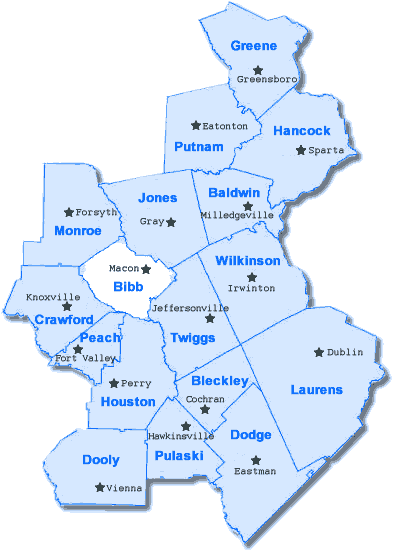 A map of Bibb County would also highlight various points of interest. These include: